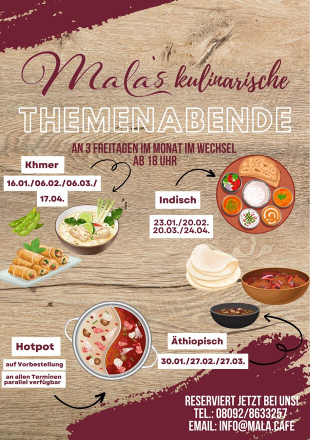 Themenabende; Indisch, Äthiopisch, Khmer oder an jedem dieser Abendende Malas Hotpot